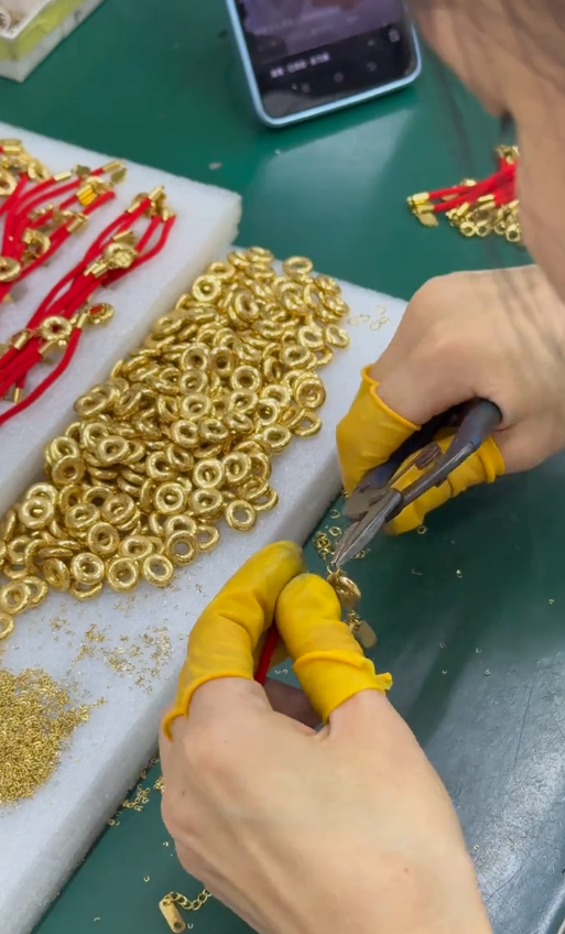 At our source factory, every piece of jewelry — whether simple yet striking gold plated bracelets or intricately designed necklaces — is crafted with precision. As seen in images from our workshop, artisans use meticulous techniques to assemble components, ensuring durability, aesthetic beauty, and the finest finish possible. From shaping rings to threading necklaces, our hands bring jewelry to life with attention to every detail.
